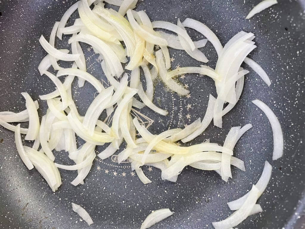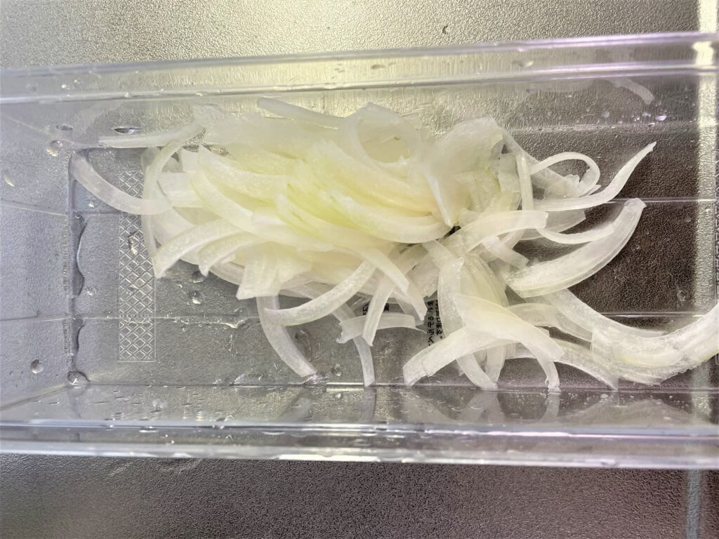 ②玉ねぎを30秒ほどを軽く炒める。少し色が付く程度でOK